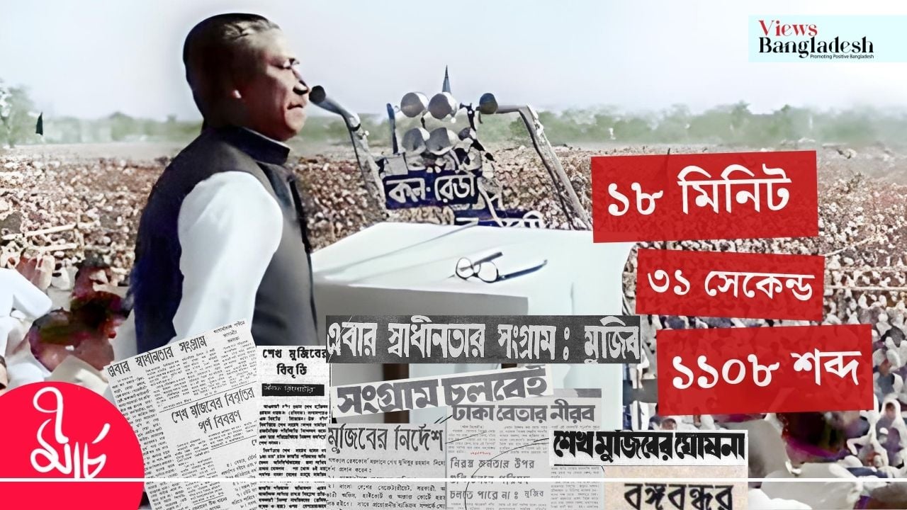 ১৯৭১ সালের ৭ মার্চ তৎকালীন রেসকোর্স ময়দানে জাতির পিতা বঙ্গবন্ধু শেখ মুজিবুর রহমান যে ঐতিহাসিক ভাষণ দিয়েছিলেন, তা ছিল পরোক্ষভাবে স্বাধীনতার ঘোষণা। ইউনেস্কো ৭ মার্চের ভাষণকে বিশ্ব প্রামাণ্য ঐতিহ্য হিসেবে স্বীকৃতি দিয়েছে। ‘ভিউজ বাংলাদেশ’-এর বিশেষ আয়োজনে প্রত্যক্ষদর্শী চার গুণীজনের বয়ানে উঠে এসেছে ৭ মার্চের ভাষণের কথা। কবি নির্মলেন্দু গুণ, কথাসাহিত্যিক সেলিনা হোসেন, ইতিহাসবিদ সৈয়দ আনোয়ার হোসেন এবং শিক্ষাবিদ ও সাবেক উপাচার্য আ আ ম স আরেফিন সিদ্দিক বর্তমান সময়ে আমাদের দেশের চার অগ্রগণ্য ব্যক্তিত্ব। তাদের কলমে উঠে এসেছে ১৯৭১ সালের ৭ মার্চের সেই আগুনরাঙা, স্বপ্নমাখা দিনের কথা, যেদিন হাজার বছরের শ্রেষ্ঠ বাঙালি আঙুল উঁচিয়ে বলেছিলেন, এবারের সংগ্রাম আমাদের মুক্তির সংগ্রাম...