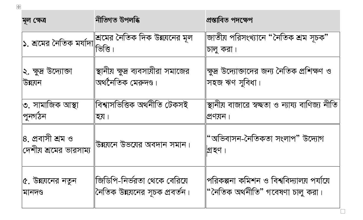 অর্থনীতি কেবল সংখ্যার খেলা নয় এটি মানুষের সম্পর্ক, বিশ্বাস, সততা ও আত্মসম্মানের এক জীবন্ত জাল। যেখানে লেনদেন শুধু অর্থের নয়, নৈতিক দায়বদ্ধতারও প্রতীক। বাংলাদেশের ভবিষ্যৎ উন্নয়ন দর্শনে প্রয়োজন “নৈতিক অর্থনীতি” ও “জীবিকার নৈতিক ভূগোল”-এর ধারণা প্রতিষ্ঠা করা। এটি হবে এমন এক অর্থনৈতিক দৃষ্টিভঙ্গি, যেখানে,