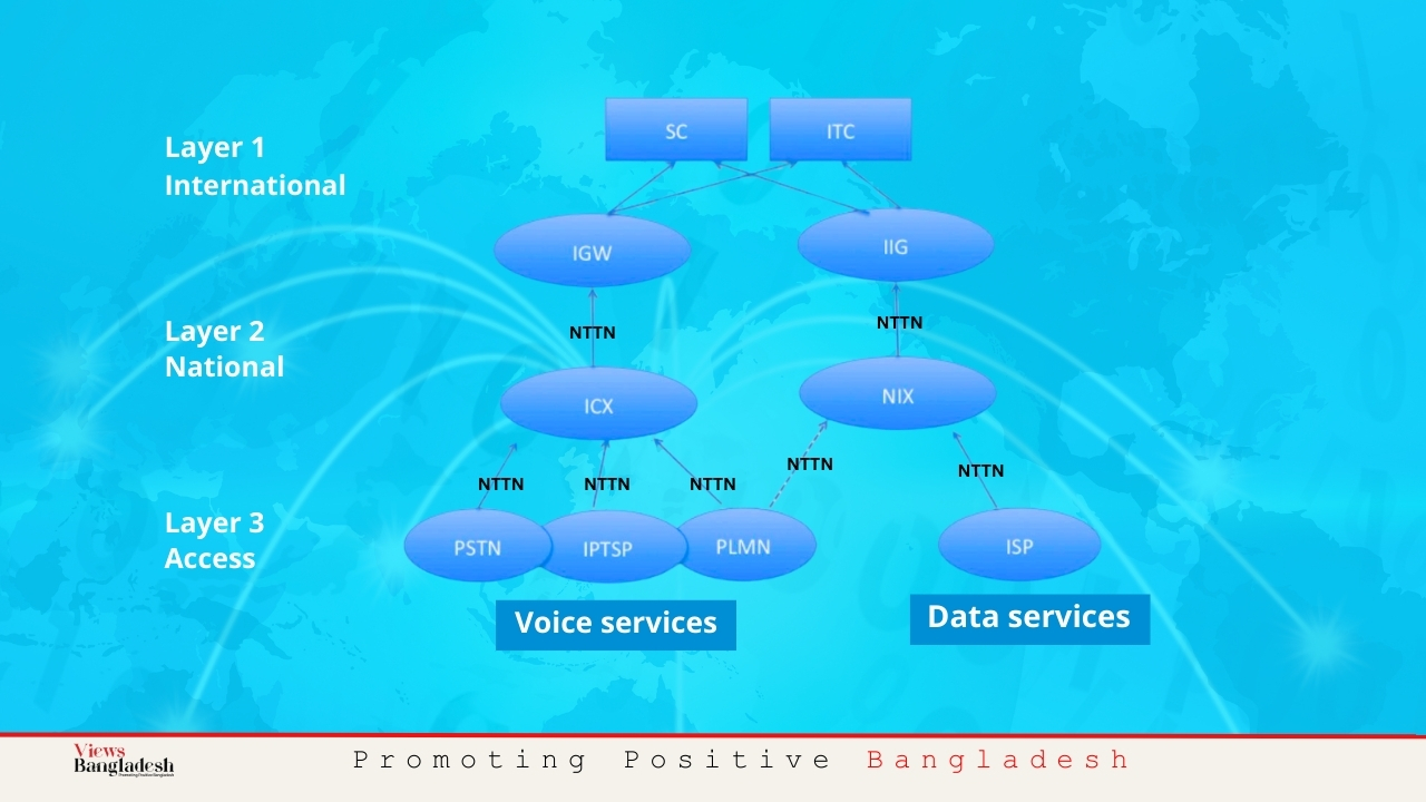 বাংলাদেশের ইন্টারন্টে অবকাঠামোটি বেশ জটিল এবং অনেক বিষয়ের সঙ্গে সম্পর্কিত:
