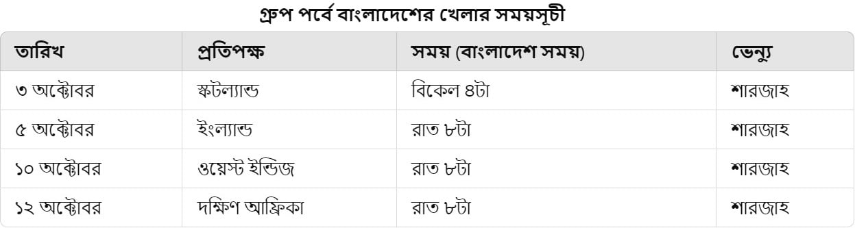 ফেভারিটের তালিকায় রয়েছে ইংল্যান্ড ও নিউজিল্যান্ডও। তবে সংযুক্ত আরব আমিরাতে হওয়ায় অস্ট্রেলিয়ার পর ভারতকেও সবচেয়ে বেশি ফেভারিট ভাবছেন ক্রিকেট বিশেষজ্ঞরা। বাংলাদেশের ক্রিকেটপ্রেমীরা অবশ্য তাকিয়ে থাকবে জ্যোতিদের দিকে। সাম্প্রতিক সময়ে যে ফর্ম তা ধরে রাখতে পারলে বিশ্বকাপের উদ্বোধনী দিনেই স্কটিশদের হারিয়ে দীর্ঘ এক দশকের খরা কাটিয়ে উঠবে বাংলাদেশ।
